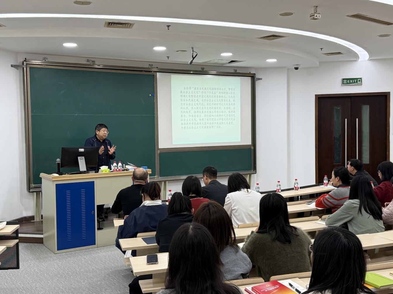 臧峰宇教授以“文化繁荣与创新创造”为核心切入点,系统阐述了激发全民族文化创新创造活力是推进社会主义现代化建设的必然要求,着重强调要深刻领会全会对建设社会主义文化强国作出的新部署、提出的新要求。围绕这一核心议题,他从三个维度展开深入解读:一是立足时代发展高度,阐明文化繁荣对社会进步的战略意义,重申马克思主义作为文化建设根本指导思想的强大思想伟力;二是从国家、社会、公民三个层面,层层剖析弘扬和践行社会主义核心价值观的深刻内涵与实践路径;三是结合教育工作实际,强调要精准对接师生的根本文化需求,尤其要强化对青年教职工的文化塑造与价值引领。