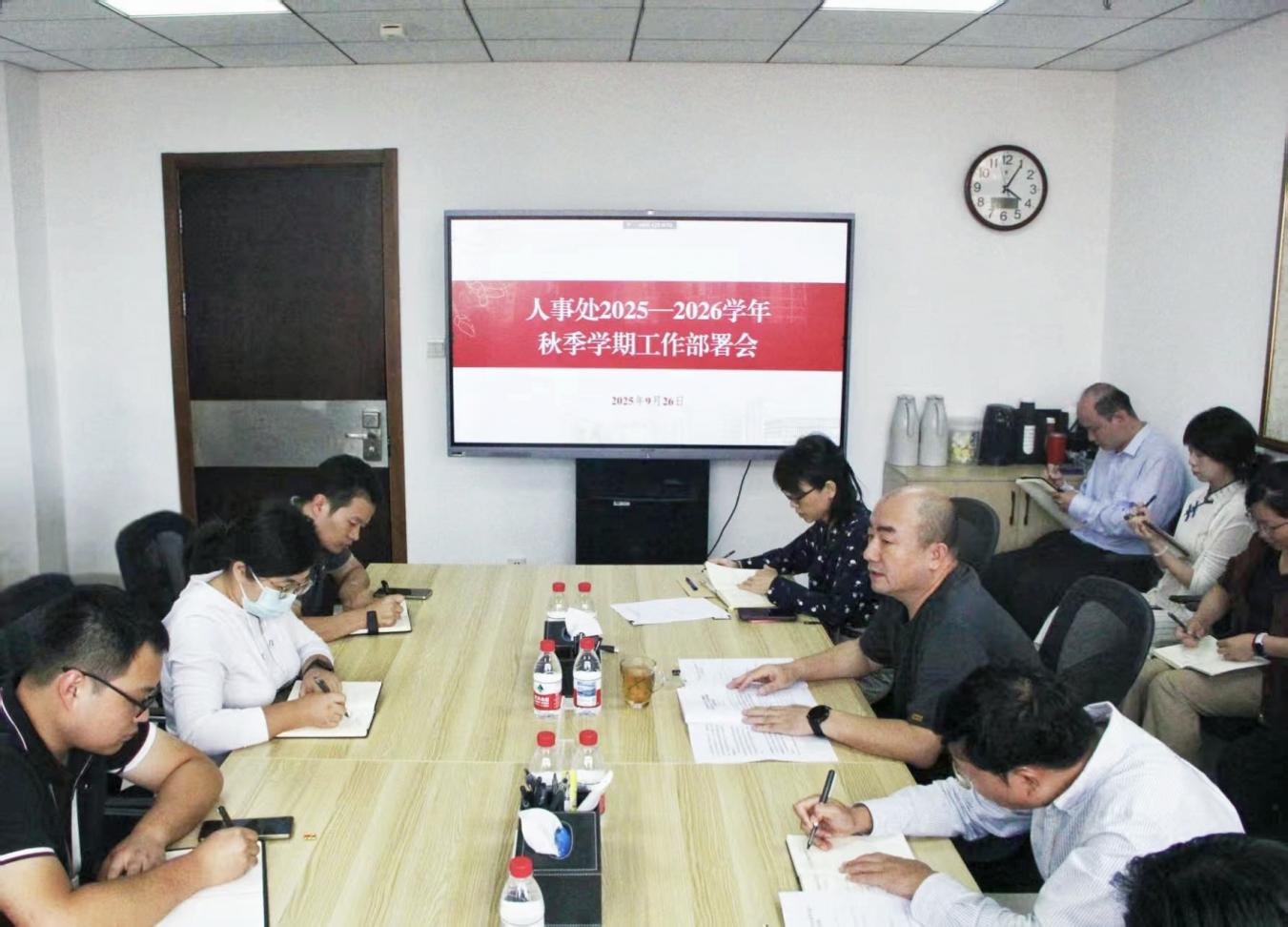 2025年9月26日,人事处召开全体会议,传达学习学校2025—2026学年秋季学期工作部署会精神,研究安排人事处新学期重点工作,并对人事处深入学习贯彻中央八项规定精神学习教育开展总结。人事处处长补利军主持会议,处内全体人员参会。